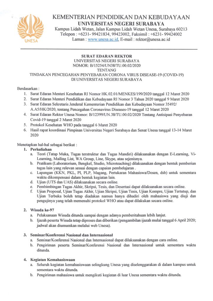Universitas Negeri Surabaya Auf Twitter Surat Edaran Rektor Tentang Tindakan Pencegahan Penyebaran Corona Virus Disease 19 Covid 19 Universitas Negeri Surabaya Info Lengkap Kunjungi Https T Co Dziqrhgkt7 Https T Co N2qhkoxnyp
